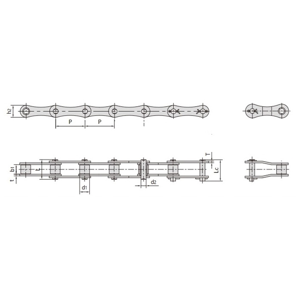 - Su estructura es similar a la de las cadenas de rodillos de precisión de paso corto, de las que hereda su alta eficiencia y fiabilidad.