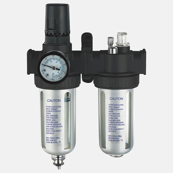 El filtro de aire, regulador de presión y lubricador 3 en 1 es un dispositivo combinado habitual en los sistemas neumáticos que integra tres funciones: filtración, regulación de presión y lubricación. Se utiliza habitualmente en sistemas de aire comprimido que requieren aire limpio, regulación precisa de la presión y lubricación de herramientas o equipos neumáticos. Esta combinación permite simplificar el diseño de las tuberías, mejorar la eficiencia del sistema, prolongar la vida útil de las herramientas neumáticas y garantizar un funcionamiento estable.
