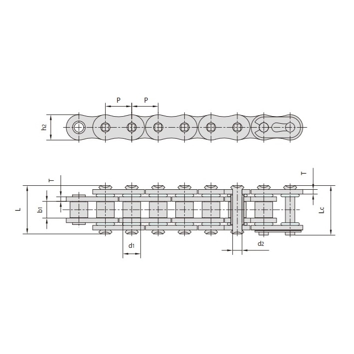 - Placas y pasadores internos de la cadena:Varios pares de placas internas de la cadena están conectados por pasadores, lo que garantiza una transmisión de potencia robusta y estable.