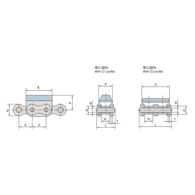 - La cadena base proporciona la función de transmisión principal, mientras que la placa superior de caucho añade amortiguación y protección. Esto hace que la cadena funcione con mayor suavidad y reduce los daños a los materiales durante el transporte.