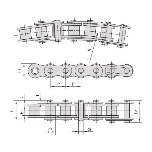 Cadena de rodillos con arco lateral de acero inoxidableestá diseñada por expertos para su uso en entornos exigentes que requieren un manejo de materiales suave, estable e higiénico. Su innovador diseño de arco lateral, combinado con una robusta construcción de acero inoxidable, garantiza un rendimiento fiable en trayectorias de transporte curvas y complejas.